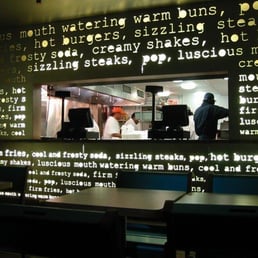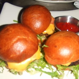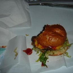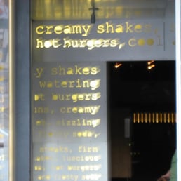 I graced this place with my roomie Amanda R. on a Saturday night after sweating out my hair at Hiro!!! The mini burgers were the stuff - AR and I ordered a box of two and split them. The burger was definitely the last thing that I ate and thought about before I passed out at home. I may have even eaten the burger in bed!! I know...not really sure! And then I ordered the fries - batterriffic perfection!!! I think they double fry them which makes them more unhealthy (i think) and more good at the same time!!! Didn't stay but there seemed to be enough tables to sit and there's a random lounge in the back that could be cool...i guess....maybe...okay, i don't know but I'll go in next time.